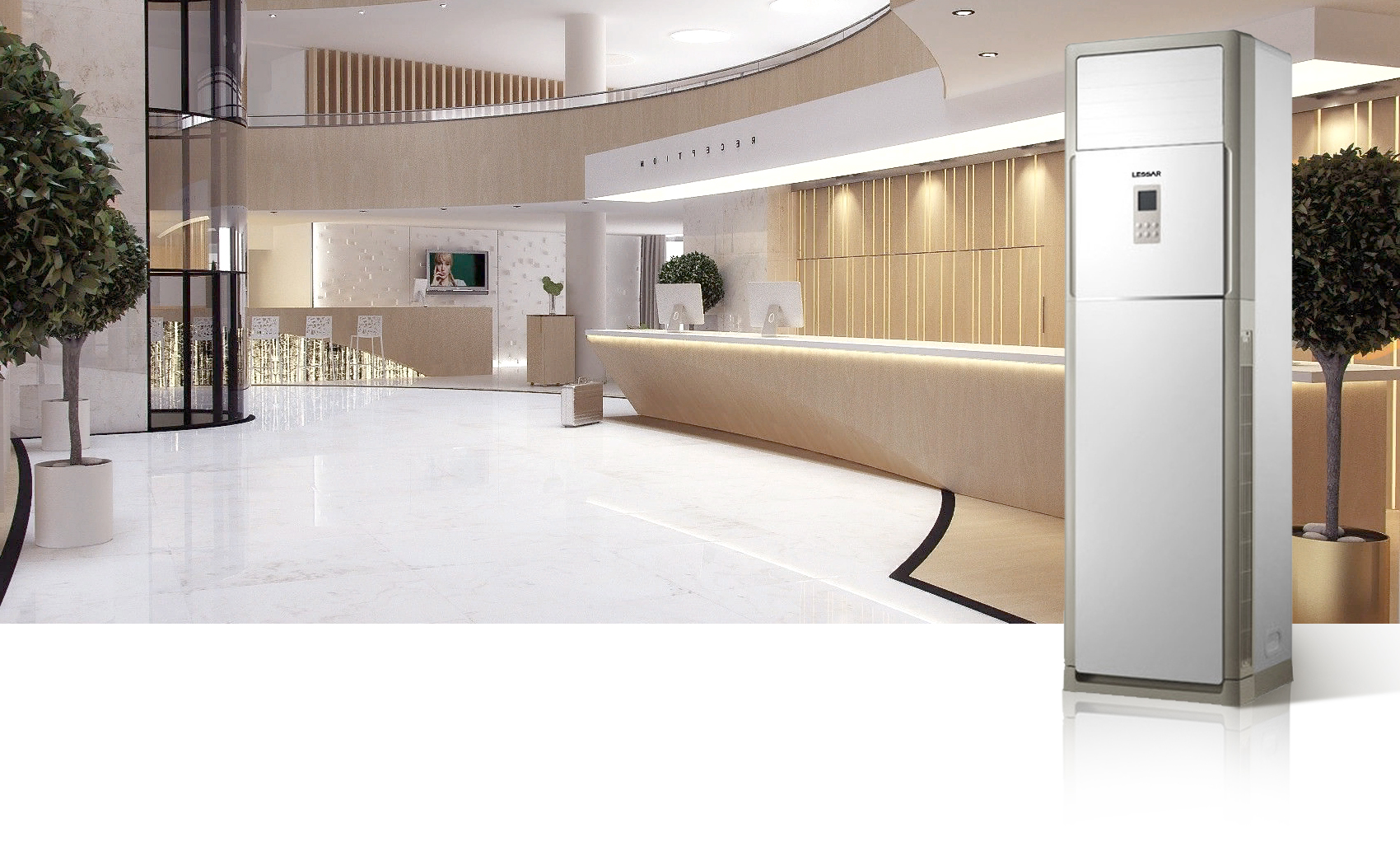 Внутренний блок сплит-системы колонного типа используется для установки на полу. Чаще всего применяется в холлах гостиниц, залах ресторанов, конференц-залах, магазинах и других общественных помещениях, где невозможно установить блок на стену или потолок и где требуется большая холодопроизводительность.