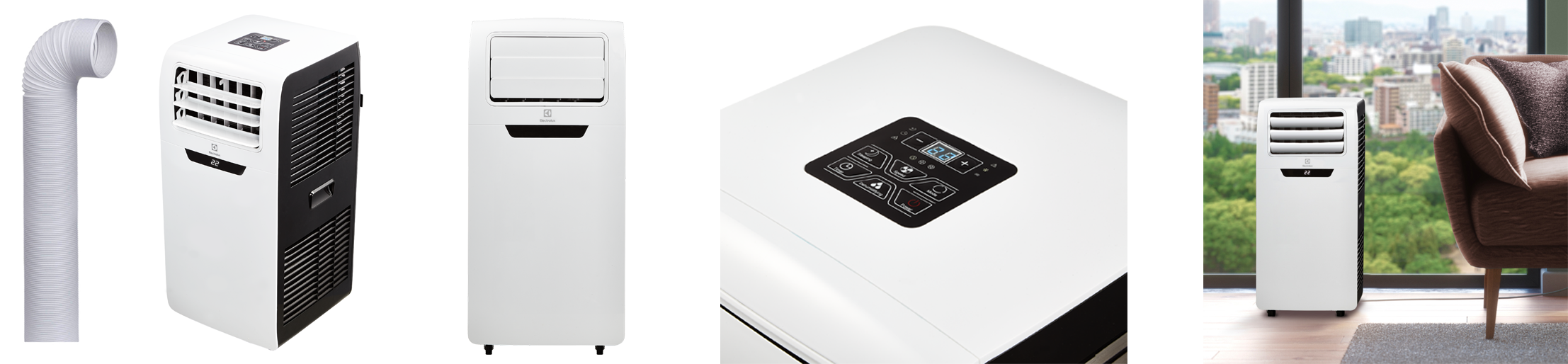 Компактный передвижной кондиционер рассчитан на охлаждение помещения площадью до 18 кв.м. Работает в 3 режимах: охлаждение, осушение и вентиляция, а так же имеет 3 скорости вентилятора. Моноблок оснащен противопылевым фильтром, который легко моется. На верхней плоскости блока расположена электронная панель управления с информационным LED-дисплеем, который отображает информацию о текущих настройках и температуре в помещении. Управлять можно так же с помощью дистанционного пульта (идет в комплекте).