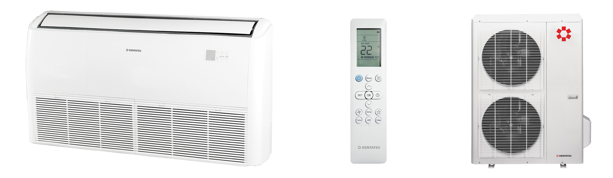 Устанавливается на пол или под потолок, рассчитана на охлаждение и обогрев помещения площадью до 160 кв.м.