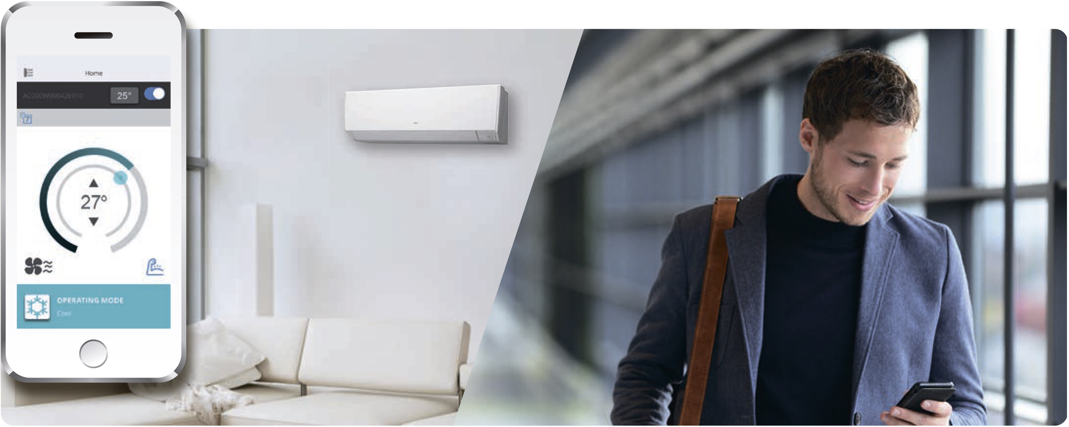 В данной модели предусмотрена возможность подключения модуля Wi-Fi (опция) для удаленного управления кондиционером через приложение с любого смарт-устройства.