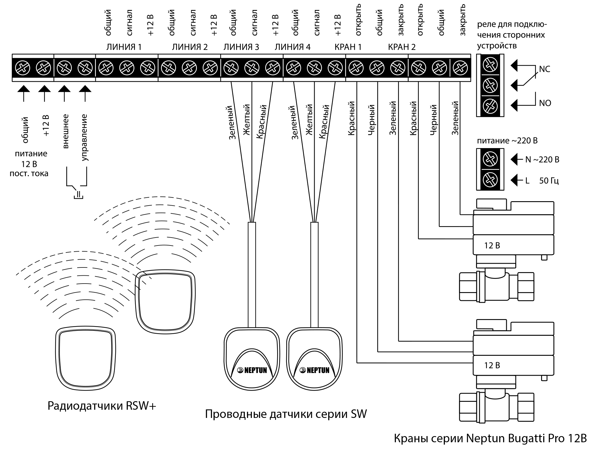 • Напряжение питания на кранах 12 В постоянного тока.