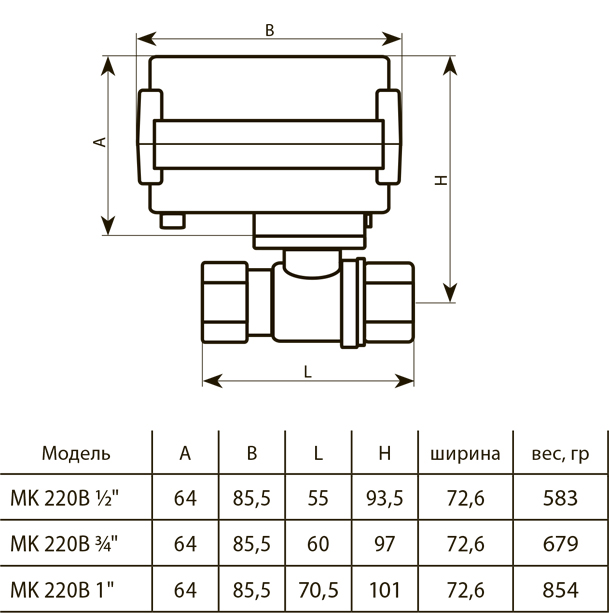 Шаровой кран с электроприводом серии MK / 220В / 1/2"