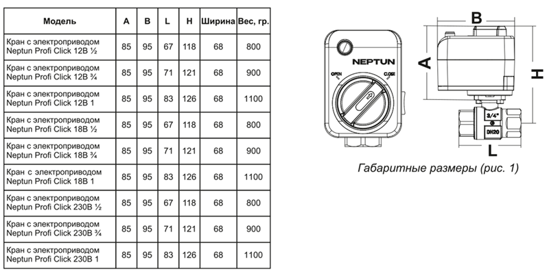 Шаровой кран с электроприводом Neptun Bugatti Click 12В 1"