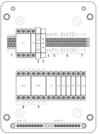 9. Подключение питания второй ступени нагрева ТЭНов.