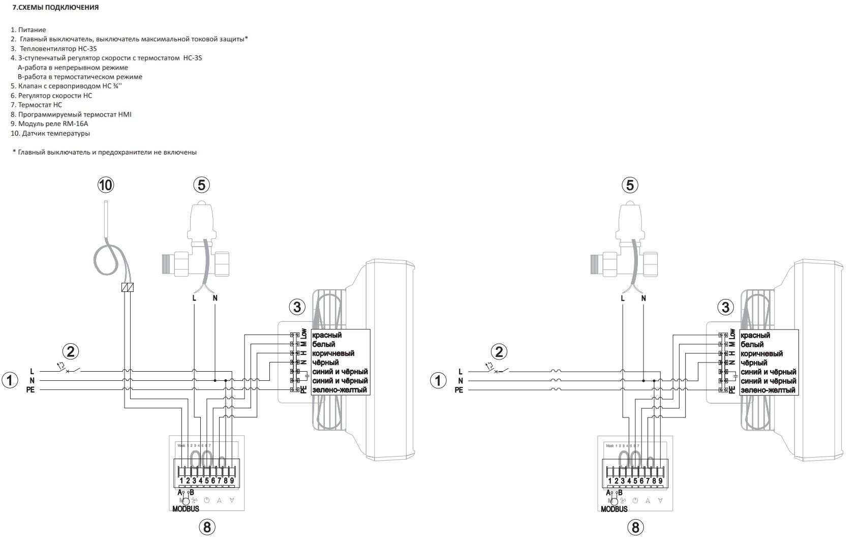 Используется для управления тепловентиляторами с двигателями AC. В комплект с термостатом входит внешний датчик который позволяет считывать температуру в необходимом месте, даже удаленно.Возможность создания еженедельного (5 + 1 + 1) цикла управления, отличающегося заданной температурой. Точный контроль в пределах ± 0,5 °C заданной температуры. Память данных, когда устройство выключено. Устройство дополнительно контролирует работу исполнительных механизмов, установленных на регулирующем клапане. Имеет коммуникационный протокол MODBUS, позволяющий интегрировать термостат с системой управления зданием BMS.