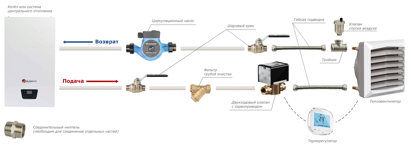 Схема подключения тепловентилятора:
