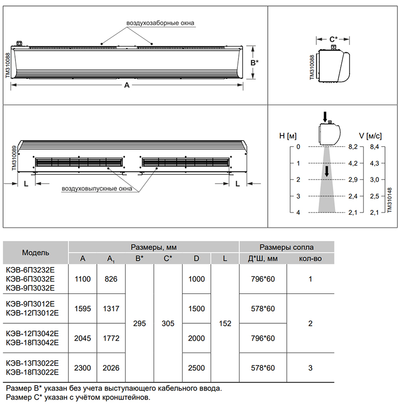Воздушно-тепловая завеса Тепломаш КЭВ-13П3023Е серии 300 Бриллиант