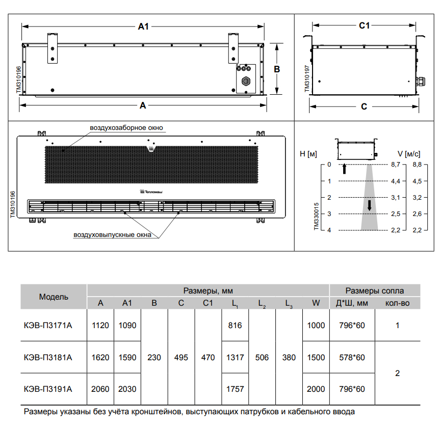 Воздушная завеса Тепломаш КЭВ-П3191A серии 300А Потолочная