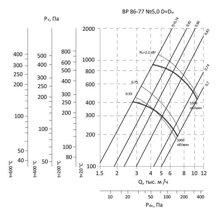 Радиальный вентилятор низкого давления ВР 86-77 / №5,0 / 0,75 кВт / 1000 об./мин. / Прав / 0°